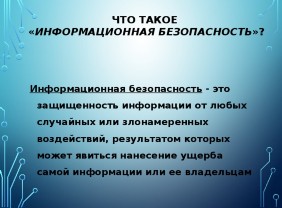 Информационная безопасность — состояние сохранности информационных ресурсов и защищенности законных прав личности и общества в информационной сфере.